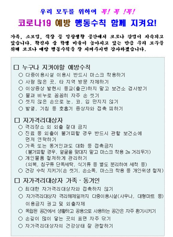 코로나19 예방 행동수칙 함께 지켜요!