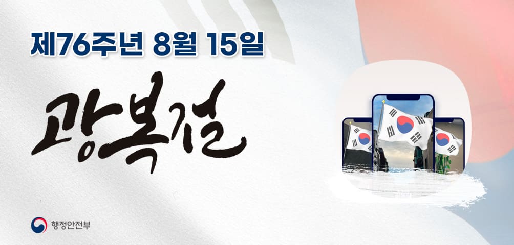 광복절은 1945년 우리나라가 광복된 것을 기념하고 국권 회복을 경축하는 날입니다. 제76주년 광복절을 맞아 나라사랑하는 마음으로 태극기를 게양합니다.