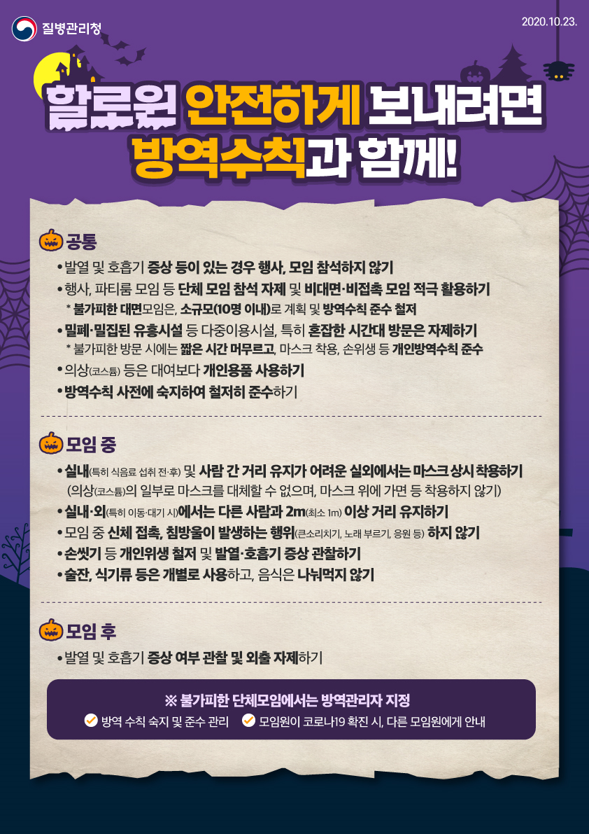 단계적 일상회복 시행(11.1.)을 앞둔 가운데, 코로나19 확진자가 지속적으로 발생하고 있으며, 전국적으로 학생확진자도 급증하고 있습니다. 실내활동이 많아지는 계절을 맞아 우리 학생들이 다중이용시설 이용 등으로 인해 감염 우려가 높아짐에 따라 가정에서도 방역 및 생활교육에 각별한 관심과 노력을 당부 드립니다.